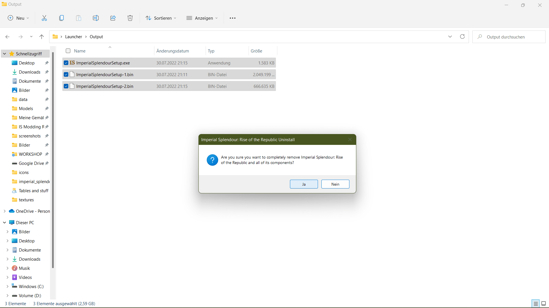 Confirm that you want to uninstall RotR 1.2