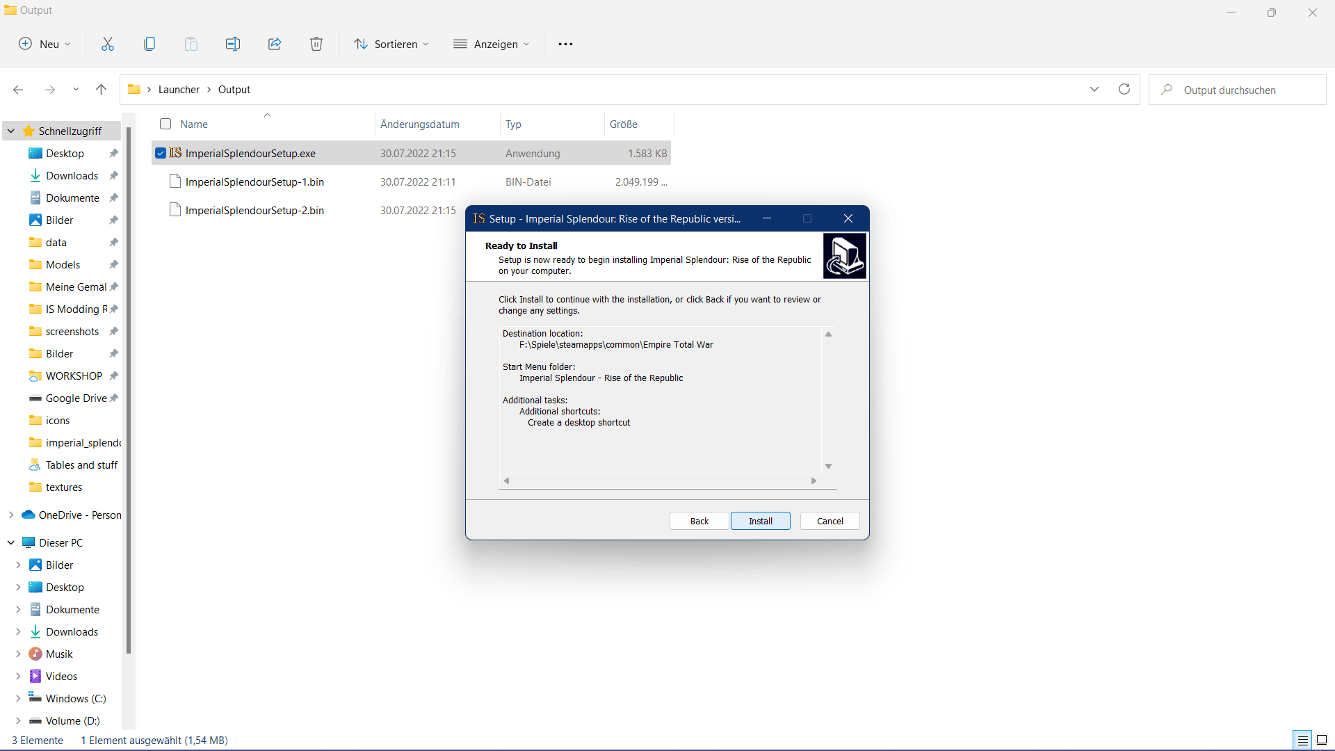 Click twice on the 'ImperialSplendourSetup.exe' and allow it to be executed.
