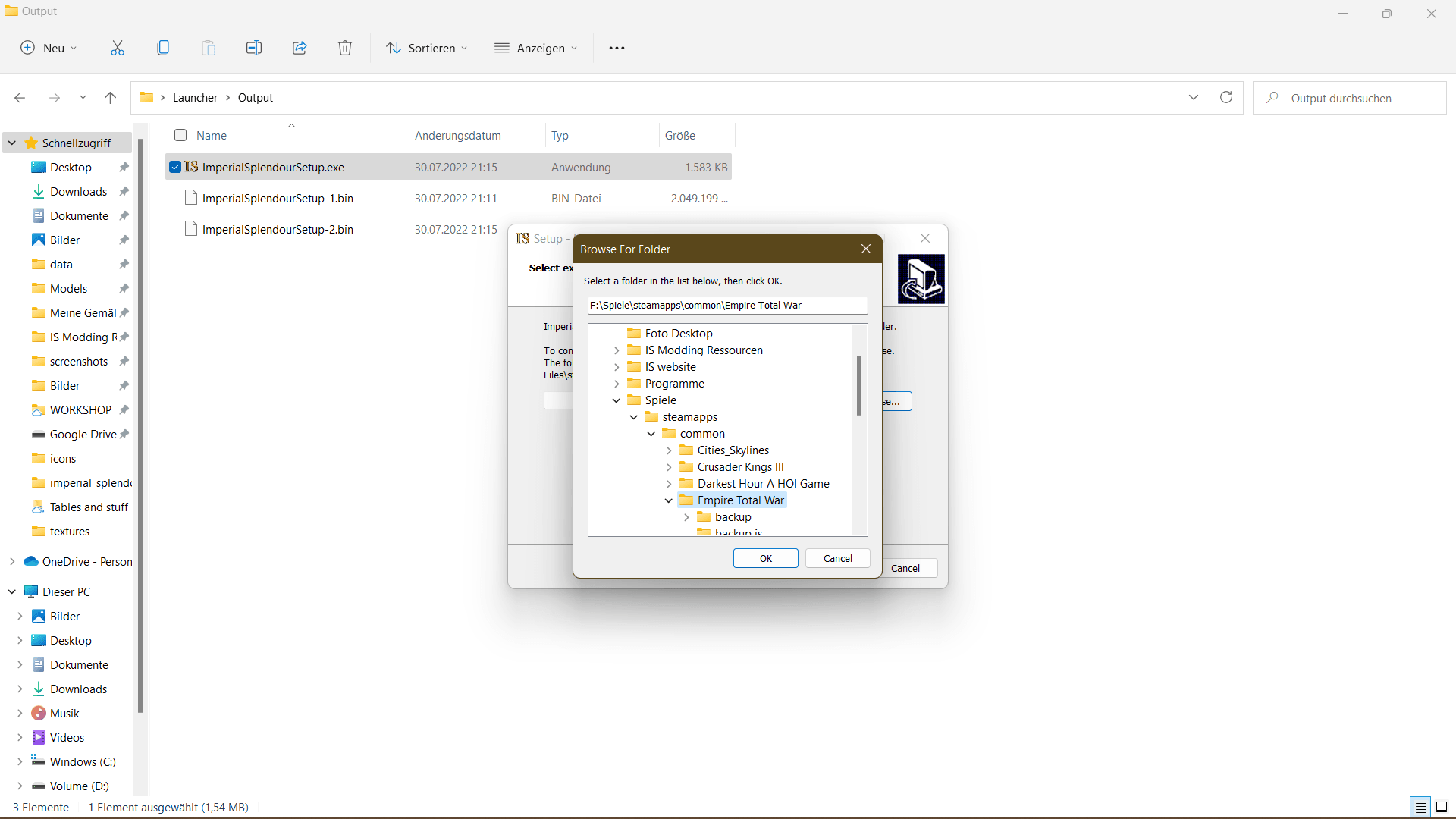 If that happens, tell the installer where you've installed Empire Total War by clicking on 'Browse' and then select your 'Empire Total War' folder, 'OK' and 'Next'.