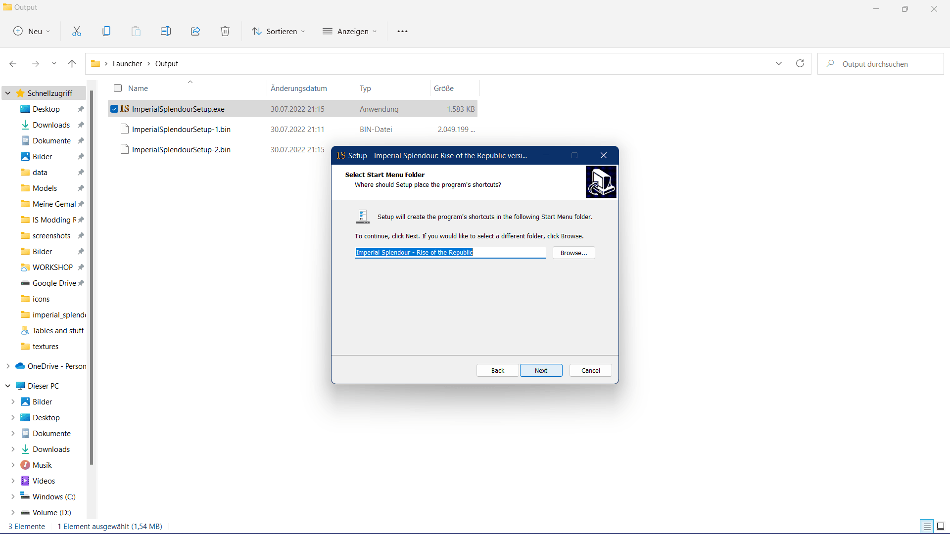 If you want, you can now select a different for the Start Menu folder, if you don't, click on 'Next'.