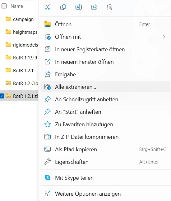 Click right on the RotR 1.2.1.zip file and left on Extract All..