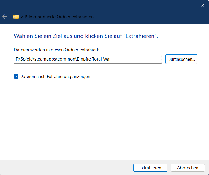 Select your Empire Total War folder as the path. The path should have the following ending: ...\steamapps\common\Empire Total War.